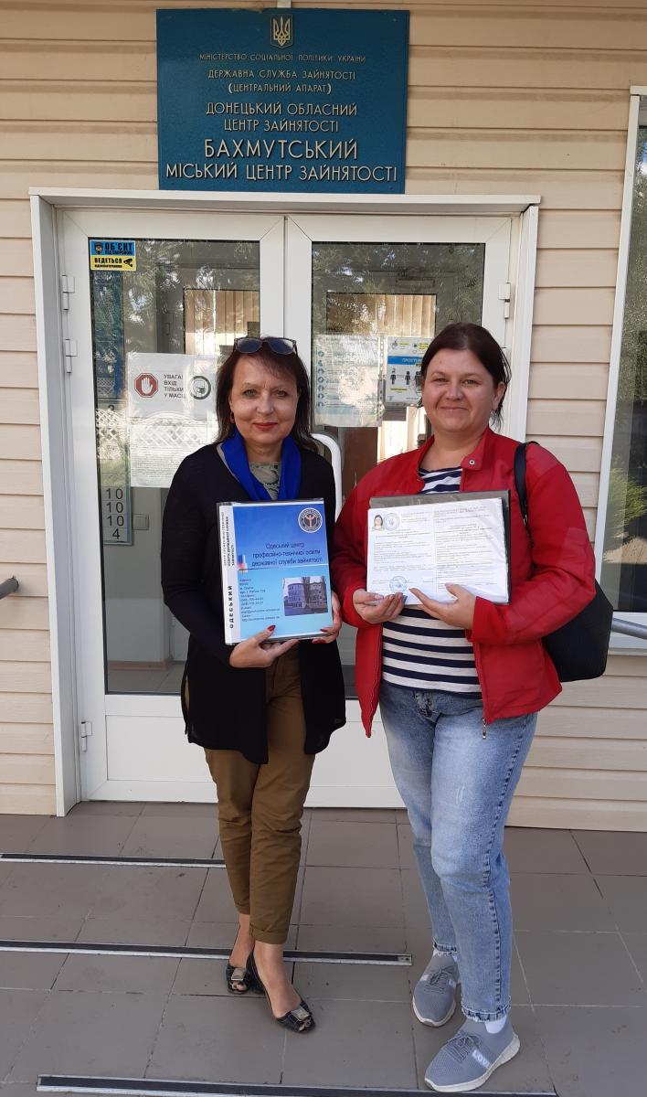 3 вересня 2021року в Бахмутському міському центрі зайнятості Валентина Суворова отримала направлення до Одеського центру професійно технічної освіти на підтвердження результатів неформального навчання.