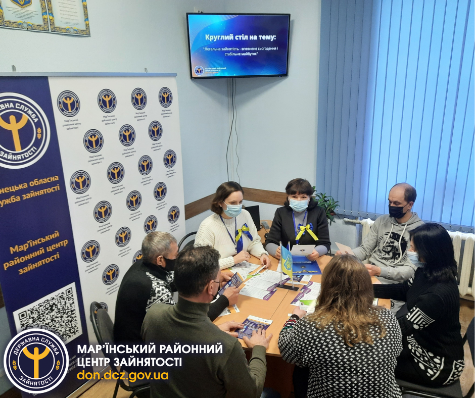 16 лютого в Мар’їнському районному центрі зайнятості відбулося засідання круглого столу на тему «Легальна зайнятість – впевнене сьогодення і стабільне майбутнє» за участю головної державної інспекторки відділу контролю Східного міжрегіонального управління Державної служби України з питань праці Марини Солохи.
