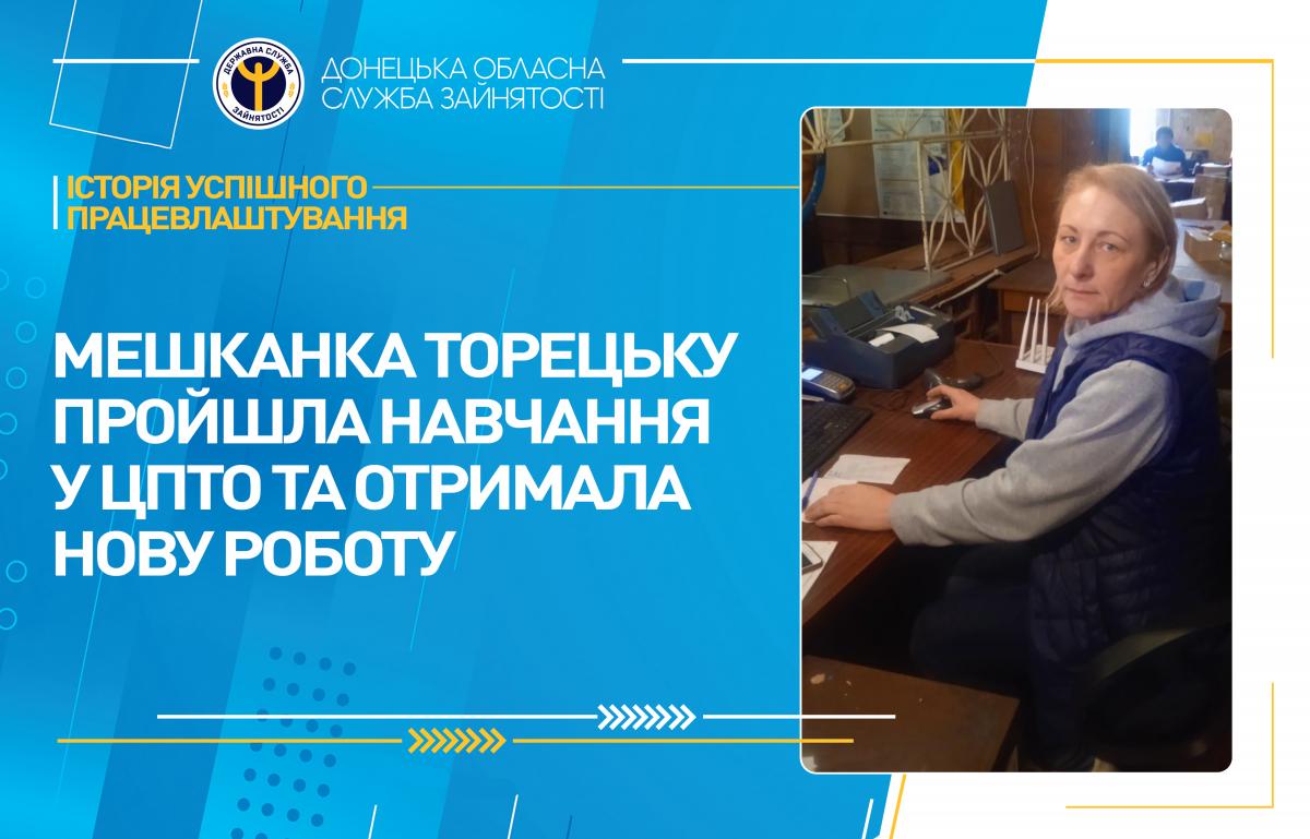 Жінка намагалася знайти роботу самотужки, але пошук не давав позитивних результатів. Тому вона вирішила звернутися за допомогою у працевлаштуванні до спеціалістів Торецького міського центру зайнятості.
