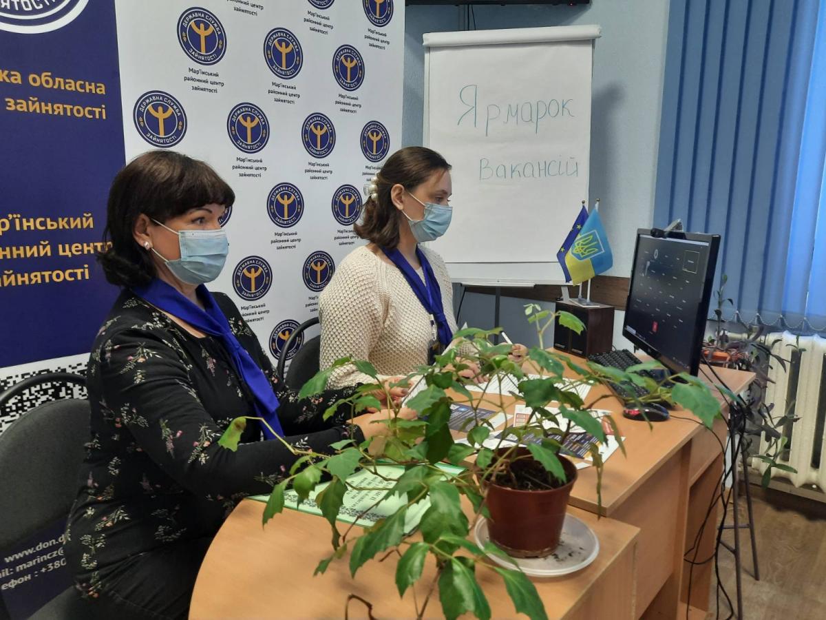 В рамках загальнообласної декади зайнятості для людей з інвалідністю 25 листопада фахівці Мар’їнського районного центру зайнятості провели мініярмарок вакансій та послуг. Захід пройшов у дистанційному форматі з використанням сервісу ZOOM.