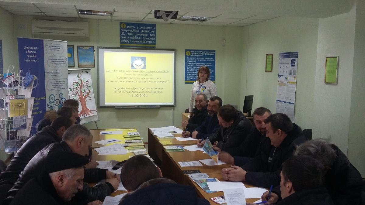 11 лютого в ДНЗ «Донецький центр професійно–технічної освіти» ДСЗУ на базі Добропільського МЦЗ розпочались курси цільового призначення для безробітних за напрямом «Сезонне технічне обслуговування сільськогосподарської техніки та тракторів» за професією «Тракторист-машиніст сільськогосподарського виробництва».