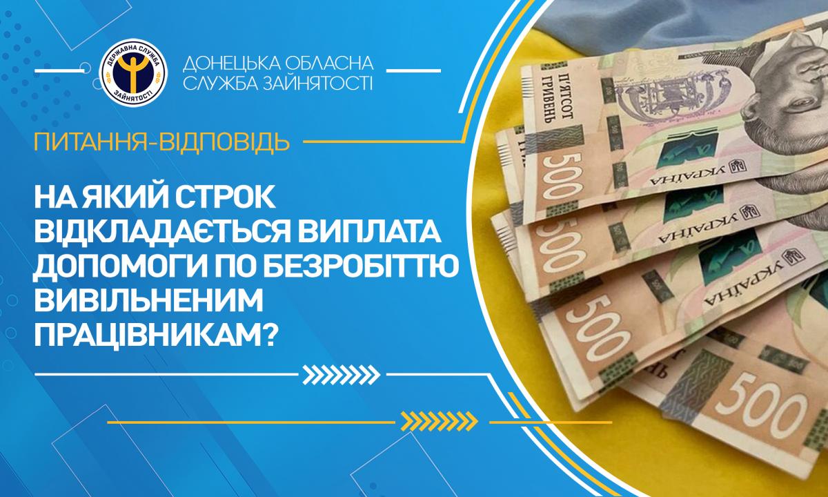 Виплата допомоги по безробіттю відкладається на строк, протягом якого застрахованій особі надається вихідна допомога або інші виплати, що забезпечують часткову або тимчасову компенсацію втраченого заробітку у разі звільнення з останнього місця роботи чи закінчення строку повноважень.