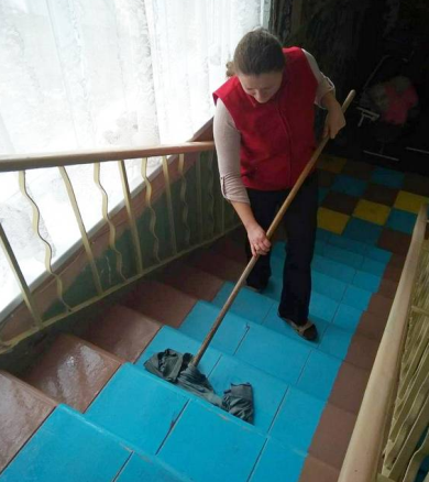 В період проведення ремонтних робіт у Центрі реабілітації та абілітації, соціальні робітники виконували ремонтні роботи: клеїли шпалери, шпаклювали і фарбували стіни і стелю, виносили сміття, прибирали приміщення.