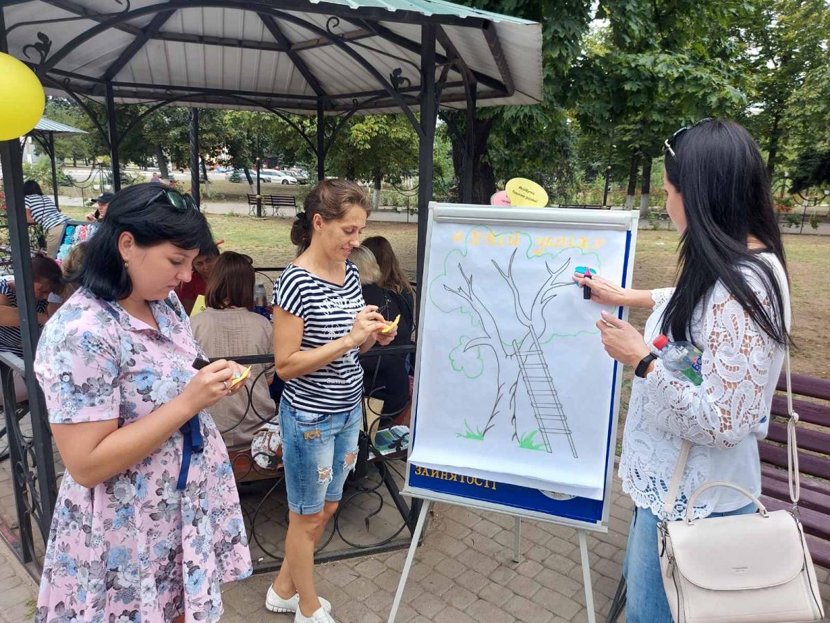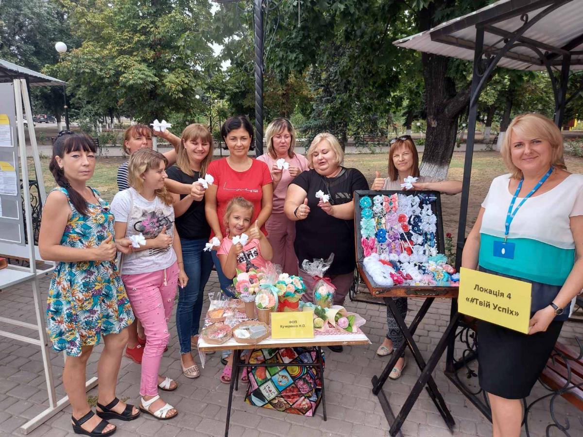 В локації «Твій успіх!» колишні безробітні, а нині експерти з бізнесу Наталя Кучеренко та керівник дитячої Арт студії «CREATIVE» Євгенія Вінник презентували пошукачам роботи свою продукцію та власний досвід.