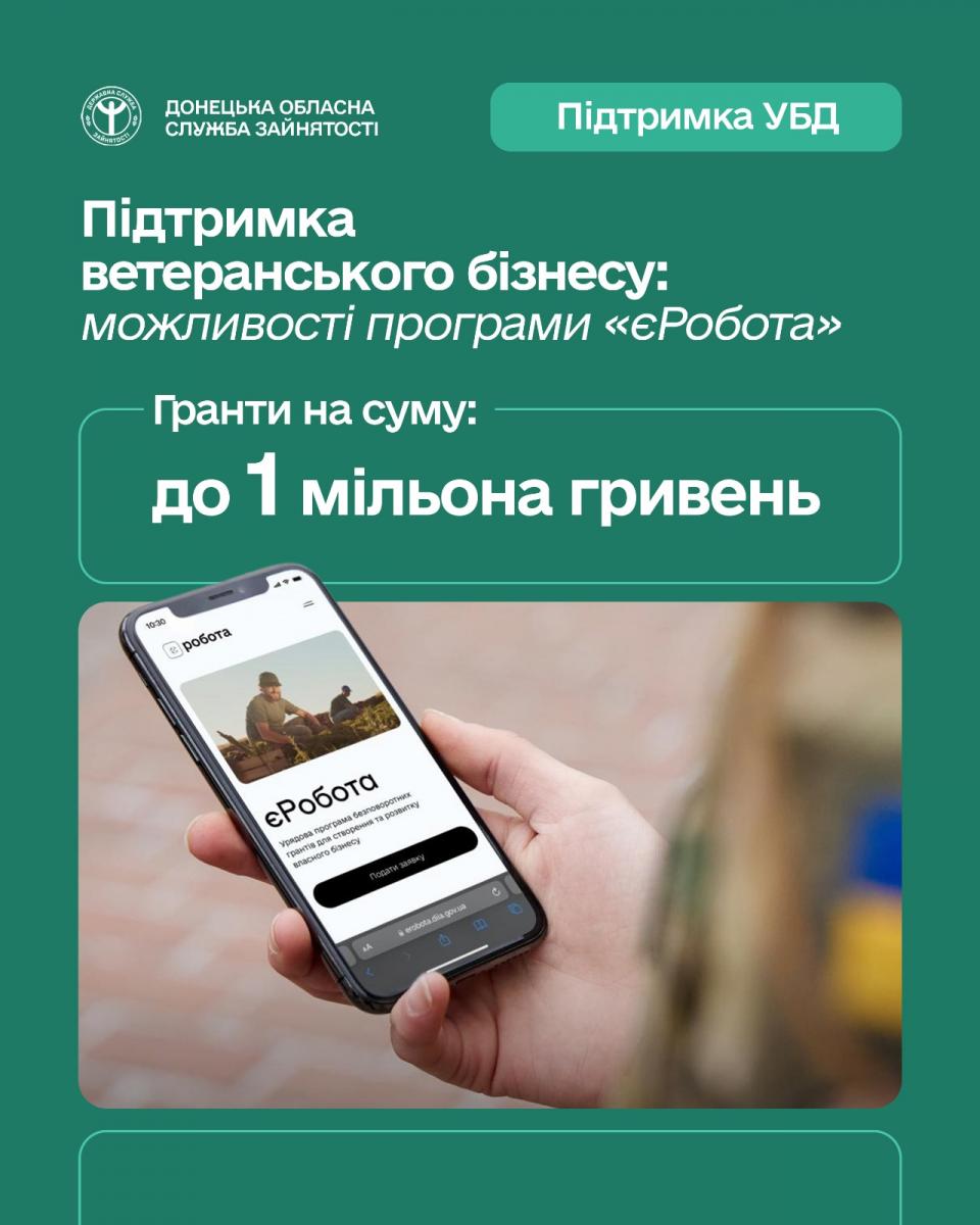 Держава продовжує підтримувати ветеранів та членів їх родини через грантову програму «єРобота». Сьогодні підтримка ветеранського підприємництва стала ще більш гнучкою, розширено коло отримувачів. З початку поточного року, окрім самих ветеранів та їхнього подружжя, отримати грант можуть також батьки, повнолітні діти та сім’ї загиблих захисників — до 1 млн грн за умови створення нових робочих місць.