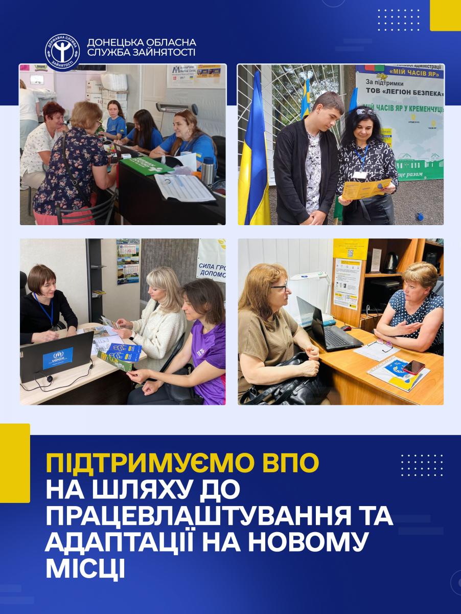 Ми підтримуємо переселенців на кожному кроці: допомагаємо знайти роботу, організовуємо навчання, знайомимо з роботодавцями й супроводжуємо до працевлаштування. Разом із партнерами у 95 гуманітарних хабах у 19 областях України наші фахівці щодня проводять консультації, зустрічі й презентують можливості для професійного розвитку та відкриття власної справи.