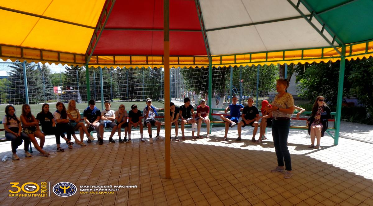 23 липня у дитячому оздоровчому таборі «Сонячний» фахівці Мангушського районного центру зайнятості провели виїздну акцію «Подорож у світ професій».