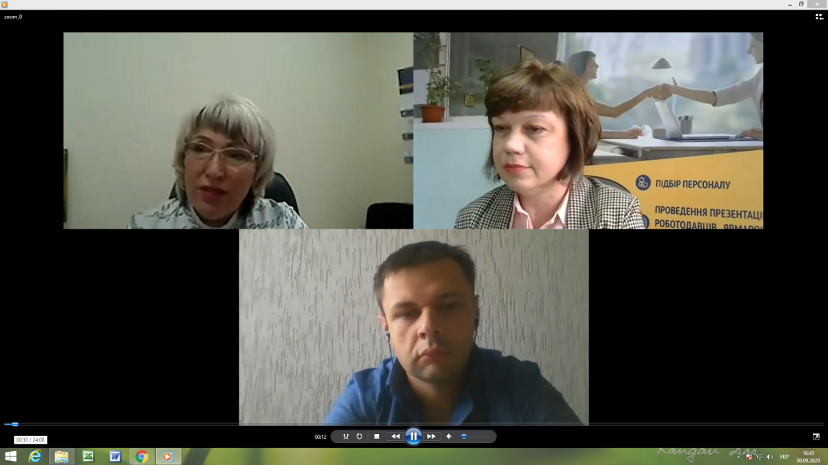Заступниця начальниці відділу рекрутингу Ірина Соколова ознайомила учасників веб-семінару з актуальними для них послугами служби зайнятості. Заступниця директорки центру Людмила Лишафаєва, підсумовуючи захід, запропонувала підприємцям і роботодавціям взяти участь в Google-опитуванні. «Ми дуже зацікавлені в отриманні зворотного зв’язку, щоб враховувати партнерські потреби і задовольняти їх своєчасно та ефективно», - зазначила вона.