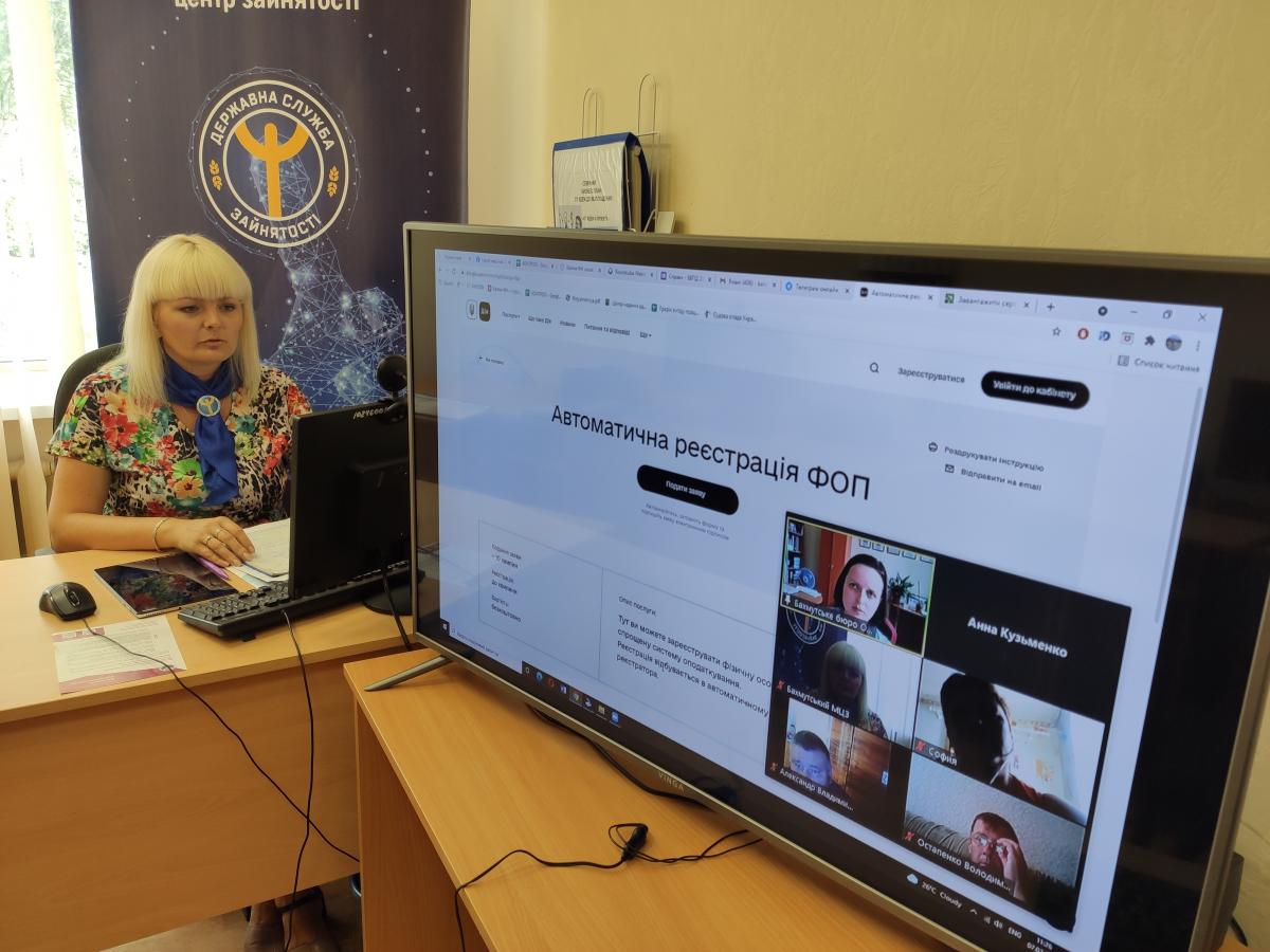 Профконсультантка Олена Бояринова ознайомила слухачів з інформаційною підтримкою Державною службою зайнятості підприємницьких ініціатив населення. Учасники розглянули поняття бізнес-ідея та бізнес-план. Фахівчиня проінформувала шукачів роботи про можливість отримання додаткового фінансування через участь у діючих міжнародних грантових програмах. Такі програми існують як для діючого бізнесу так і для тих, хто лише замислюється над відкриттям власної справи.