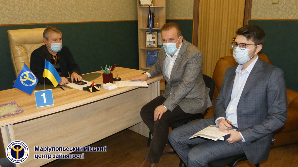 1 грудня директор Маріупольського міського центру зайнятості Юрій Чуприн провів робочу зустріч з головою правління групи підприємств ТОВ «Управління громадського харчування та торгівлі» і «Екоіллічпродукт» Юрієм Тернавським.