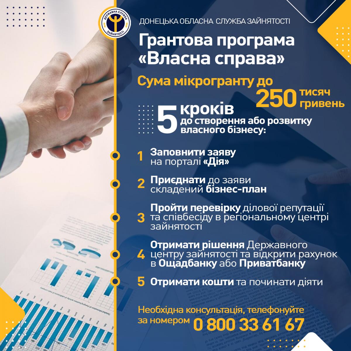 Більш детально щодо грантової програми «Власна справа» за посиланням: https://www.dcz.gov.ua/people/micro