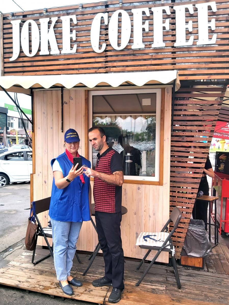 Для фахівців Слов’янського міського центру зайнятості підтримувати постійний контакт зі своїми клієнтами-роботодавцями і продовжувати співпрацювати з ними навіть в умовах евакуації – задача пріоритетна і водночас приємна. Тому в серпні мобільна група побувала в гостях у фізичної особи-підприємця Віталія Ретунського, щоб поділитись важливою інформацією та заразом почастуватися кавою «з нотками Слов’янщини».