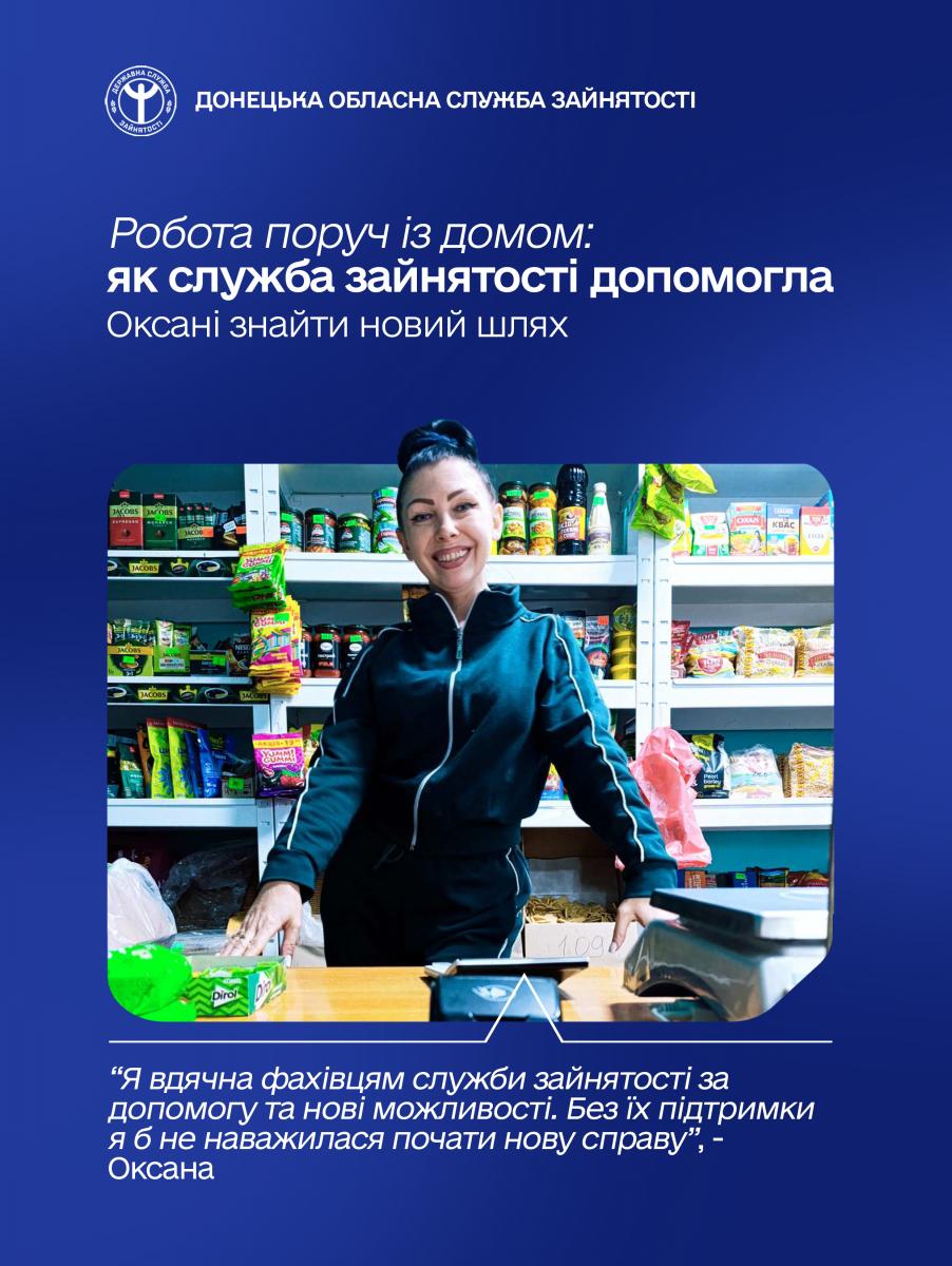 Спочатку Оксана вагалася: у неї не було досвіду саме у сфері торгівлі. Та служба зайнятості запропонувала пройти курси підвищення кваліфікації, аби здобути необхідні навички. Навчання допомогло подолати сумніви, і вже після його завершення роботодавкць охоче прийняв Оксану на роботу.