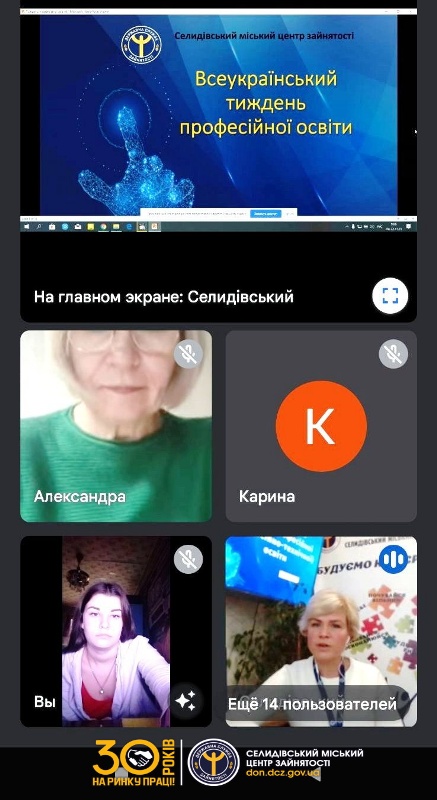 22 листопада фахівчиня з профорієнтації Анна Карпенко провела для випускників загальноосвітньої школи I-III ст. №1 м. Селидове профорієнтаційний онлайн урок на тему " Хочу+Можу+Треба = правильний вибір професії" в рамках Всеукраїнського тижня професійної (професійно-технічної) освіти.