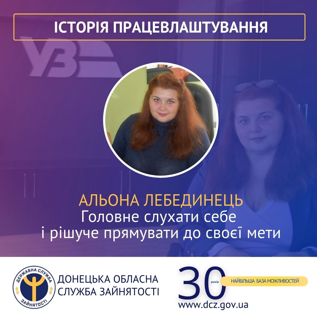Свідомий вибір майбутнього формується з дитинства, у вигляді захоплень, участі у заходах та реалізації себе там, де цікаво. Так, героїня успішного працевлаштування, Альона Лебединець, з шкільного віку займалась в дитячій школі журналіста, була призером Малої академії наук Донецької області. Вищу освіту дівчина отримала у Харківському національному університеті ім. Каразіна за спеціальністю «Філолог», де і пов’язала своє життя з журналістикою. Саме у Харкові Альона напрацьовувала досвід, реалізовуючи свій потенціал журналістом, кореспондентом, редактором та керівником студії журналістики для дітей.