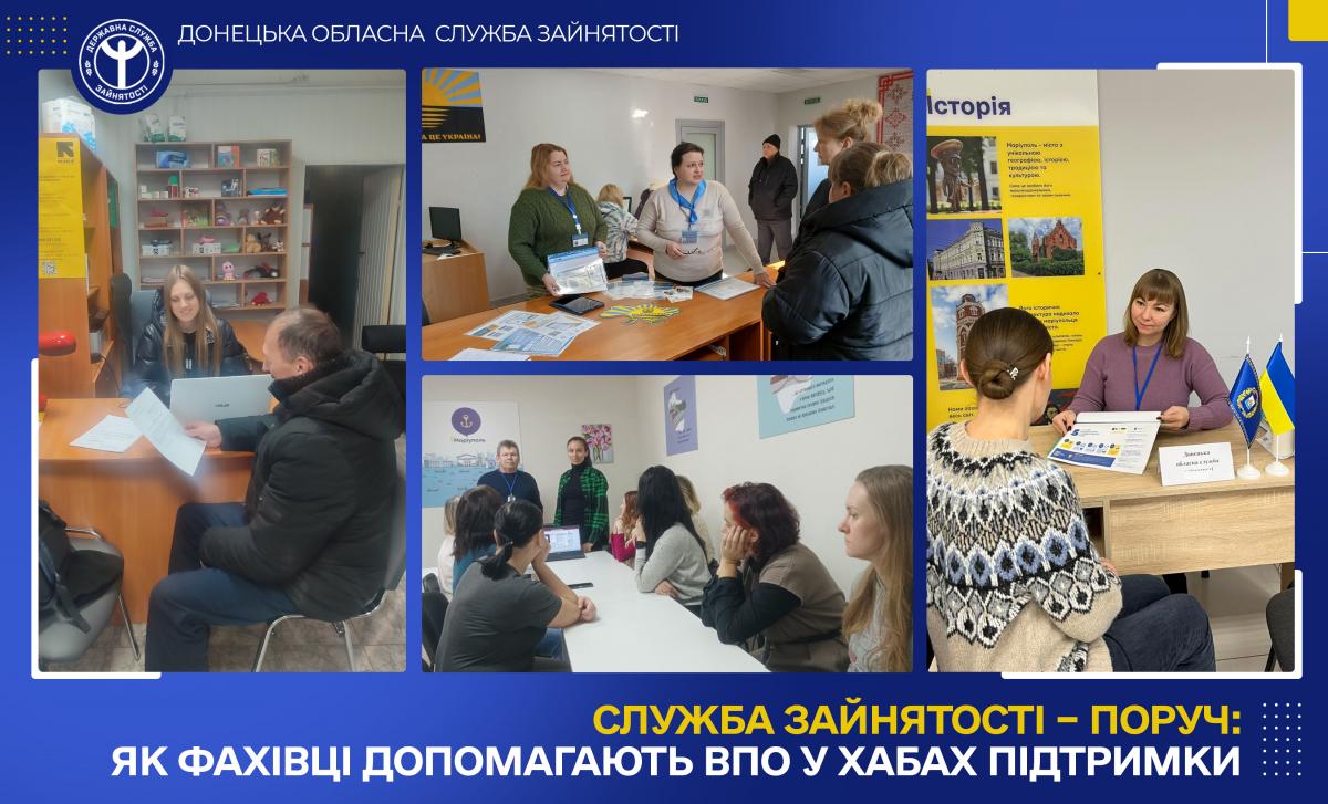 Фахівці Донецької обласної служби зайнятості активно співпрацюють з хабами підтримки ВПО, надаючи широкий спектр послуг, спрямованих на допомогу переселенцям у пошуку роботи та адаптації на новому місці.