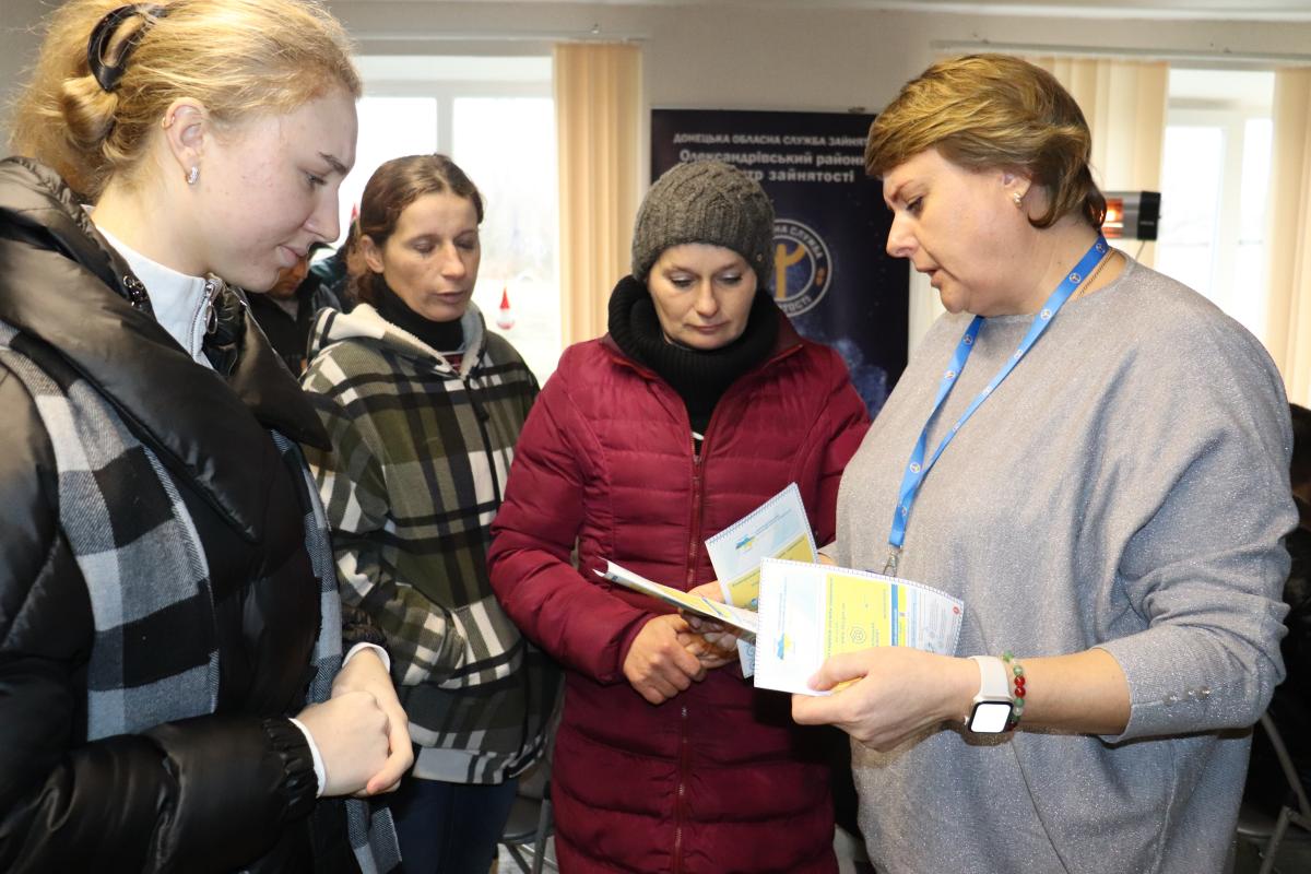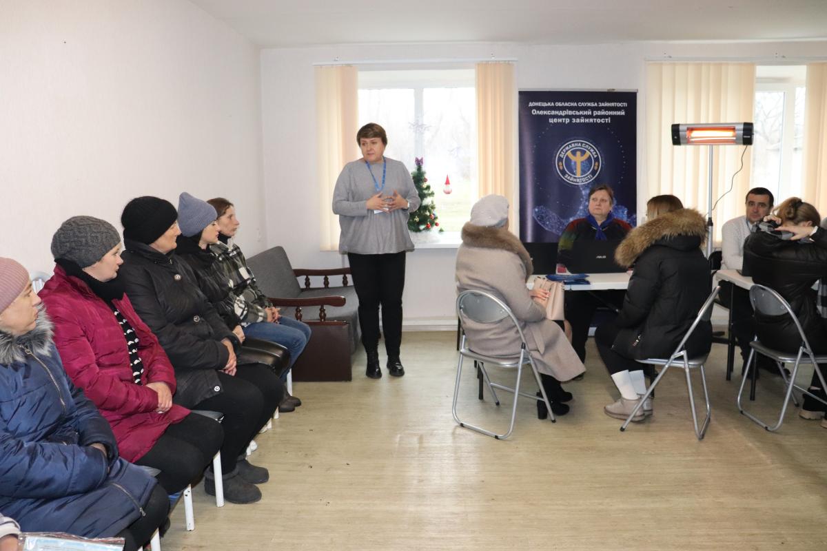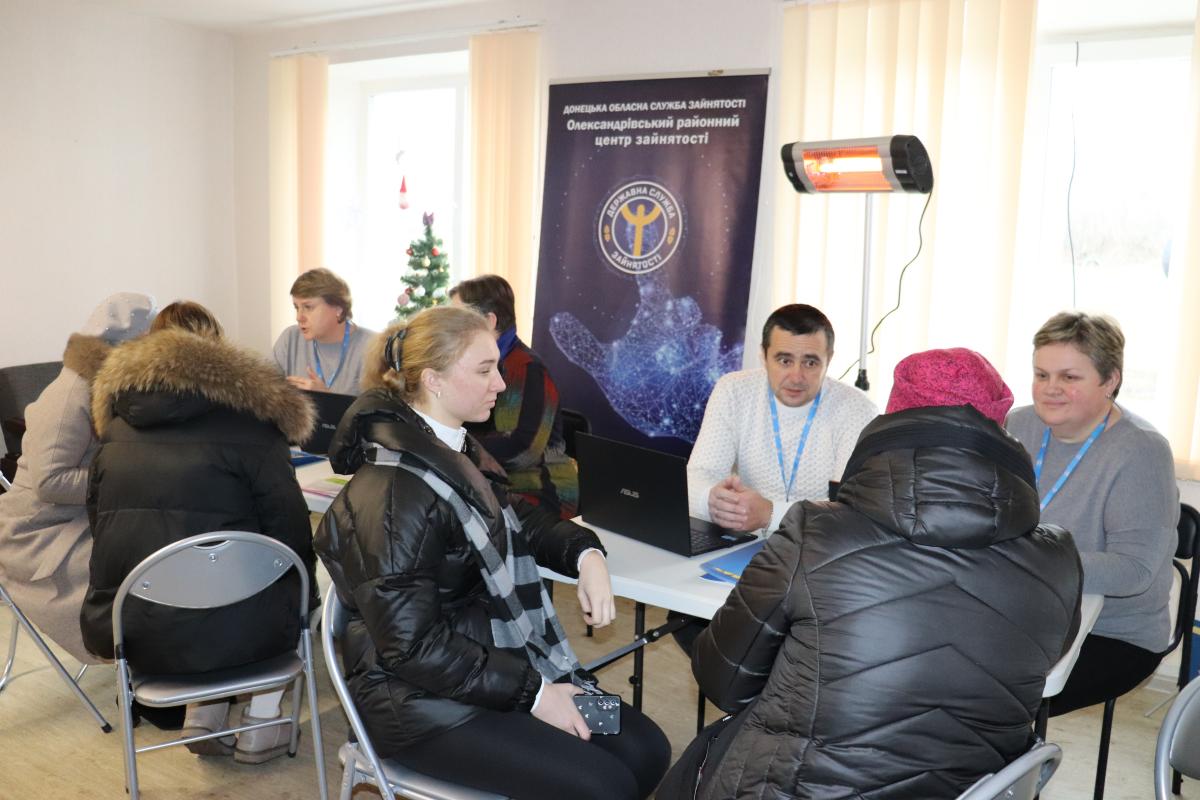 Так, 22 грудня фахівці Олександрівського районного центру зайнятості провели виїзний захід у с. Новоолександрівка Краматорського району. Участь в роботі мобільного центру взяли майже 50 місцевих мешканців різних категорій населення, в тому числі переселенці.