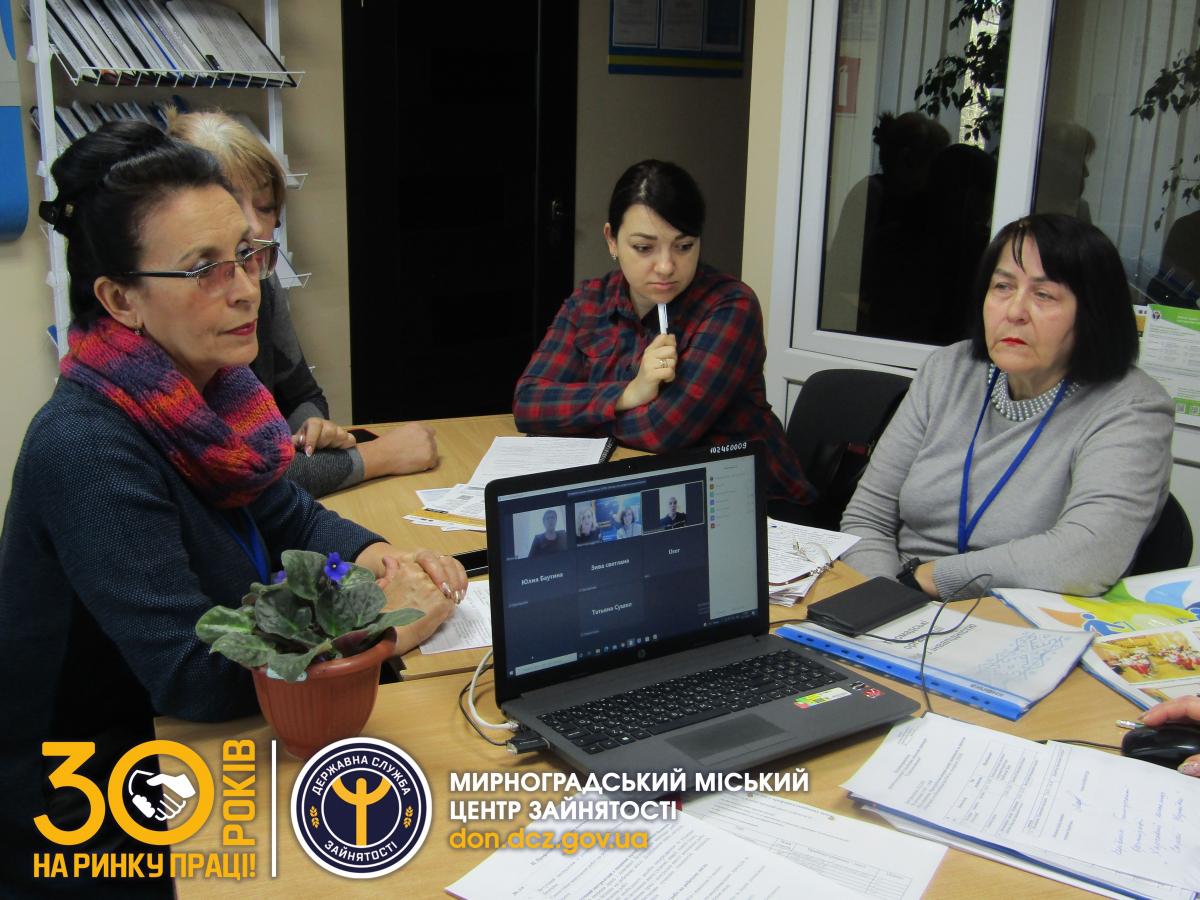До заходу долучились представники управління праці та соціального захисту населення Мирноградської міської ради, Покровського об’єднаного Управління пенсійного фонду України, Покровського товариства сліпих, громадської організації «Харчовий кластер Східної України». Також до онлайну приєдналась голова Ради роботодавців при Мирноградському міському центрі зайнятості Марина Чигир.