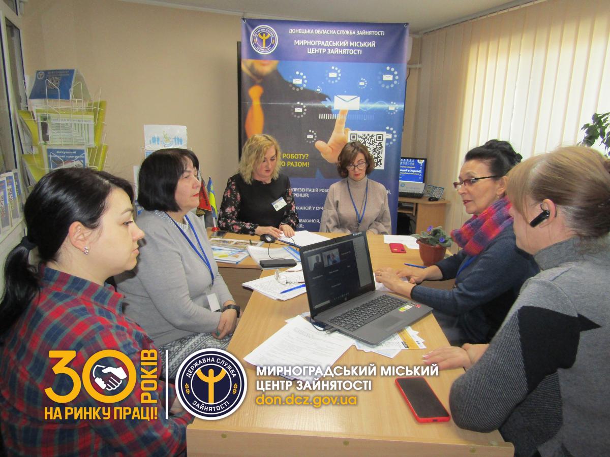 25 листопада фахівцями Мирноградського міського центру зайнятості було проведено групова консультація із залученням соціальних партнерів «Соціальна вітальня». У заході взяли участь роботодавці міста та особи з інвалідністю, які перебувають на обліку.