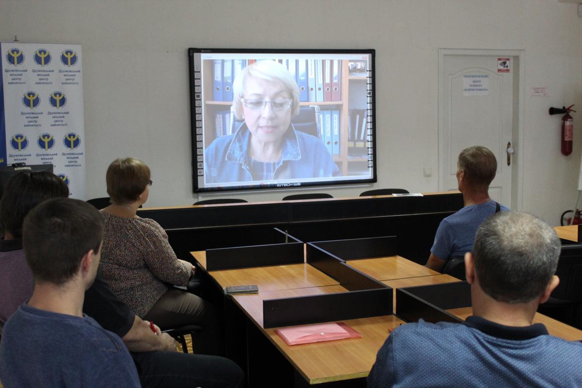 На скайпзв’язок з безробітними вийшла заступниця директора Донецького ЦПТО Наталя Піддубна. Вона розповіла про професії, які можна отримати в навчальному закладі, про учбові аудиторії та виробничі майстерні.