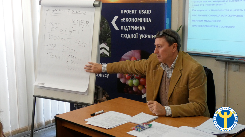 Трансформаційний тренінг з бізнес-імітації провів Юрій Тупікало, сертифікований бізнес-тренер, представник міжнародної компанії USАID.  Протягом трьох годин учасники тренінгу вчилися постановці цілей у власному бізнесі, будували план дій з просування власної справи.