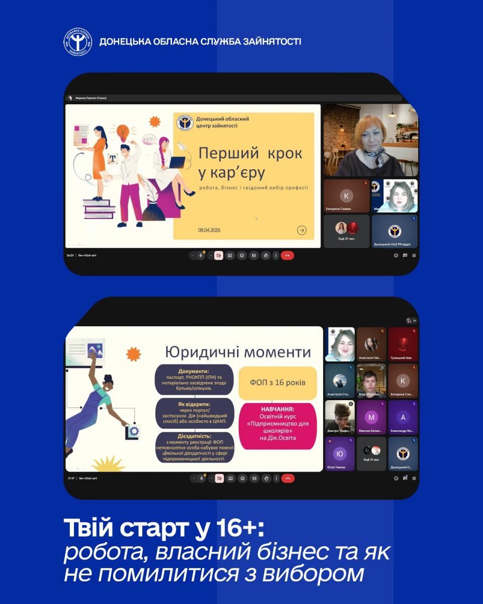 8 квітня в межах онлайн-програми «ПідлітОК!»Донецького обласного молодіжного центру Марина Пирлик, начальниця відділу профорієнтації Донецького обласного центру зайнятості, провелаінтенсив для молодих людей, які вже зараз замислюється: «А що далі?».