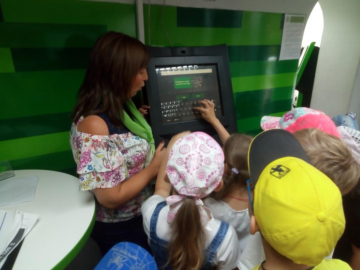Під час екскурсії хлопці та дівчата мали можливість скористатись терміналом та придбати квитки на потяг. На власні очі побачили особливості грошових купюр, роздивившись їх в ультрафіолетовий детектор валют. Зрозуміли як працюють фахівці з обслуговування клієнтів та касир.