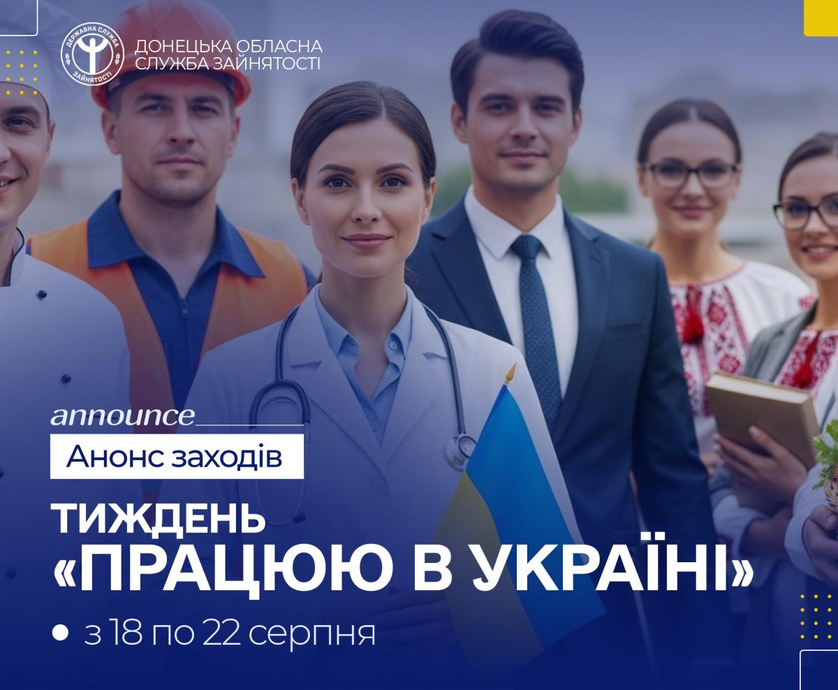 З нагоди Дня Незалежності України Донецька обласна служба зайнятості з 18 по 22 серпня 2025 року проведе тематичний тиждень «Працюю в Україні».