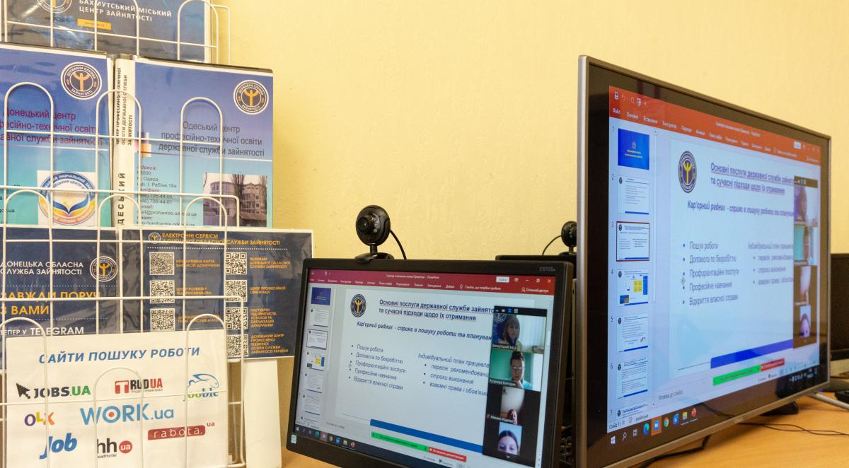 Фахівчиня  надала інформацію про можливості електронних сервісів служби, зокрема сайту Державної служби зайнятості https://www.dcz.gov.ua/ та Платформи з профорієнтації та розвитку кар’єри http://profi.dcz.gov.ua/
