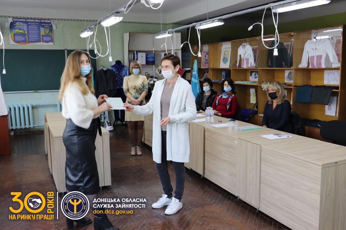 Говорять, що дорослу людину важко навчити іншій професії. Та випускники Донецького центру профтехосвіти за напрямком «Швачка» сміливо можуть посперечатися з цим висловом. Сьогодні, 7 жовтня, вони офіційно отримали нову спеціальність, поповнивши свій арсенал новими знаннями та навичками.