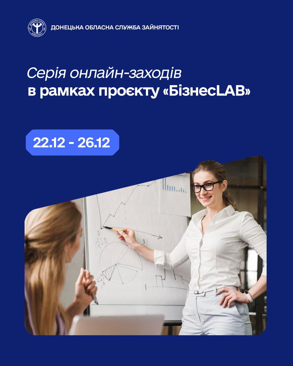 «БізнесLAB» — це інтерактивний простір для навчання, професійного спілкування та обміну досвідом. Тут ви отримаєте експертні поради від спеціалістів служби зайнятості та партнерів, зможете поставити свої запитання та знайти нові можливості для розвитку власних бізнес-ідей.