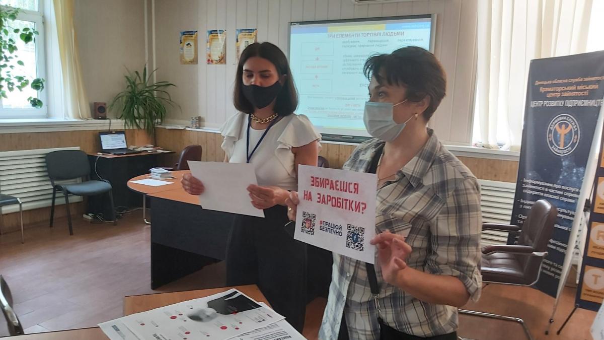 30 липня в рамках загальнонаціональної інформаційної кампанія з нагоди Всесвітнього дня протидії торгівлі людьми у Краматорському міському центрі зайнятості проведено ряд заходів: тренінг «Працюй безпечно», гра зі школярами «Ліза та ії друзі: Подорожуй безпечно», інформаційний семінар та вебінар «Ризики нелегальної трудової міграції».
