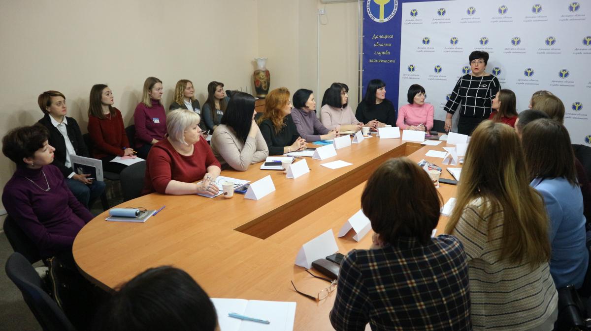 11 - 12 грудня на базі Донецького обласного центру зайнятості пройшов навчальний семінар для керівників відділів профорієнтаційної спрямованості міських та районних центрів зайнятості, який був присвячений темі «Сучасні навички ефективного спілкування, як основний інструмент в роботі профконсультанта».