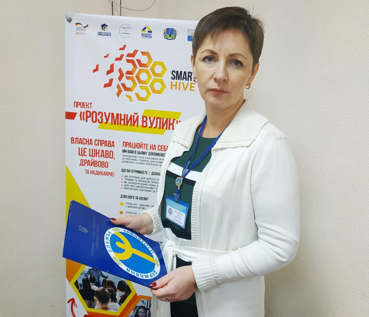 Участь у презентації взяли представники міської влади, громадські організації, успішні підприємці міста, начальниця відділу активної підтримки безробітних Маріупольського міського центру зайнятості Леся Петрушенко.