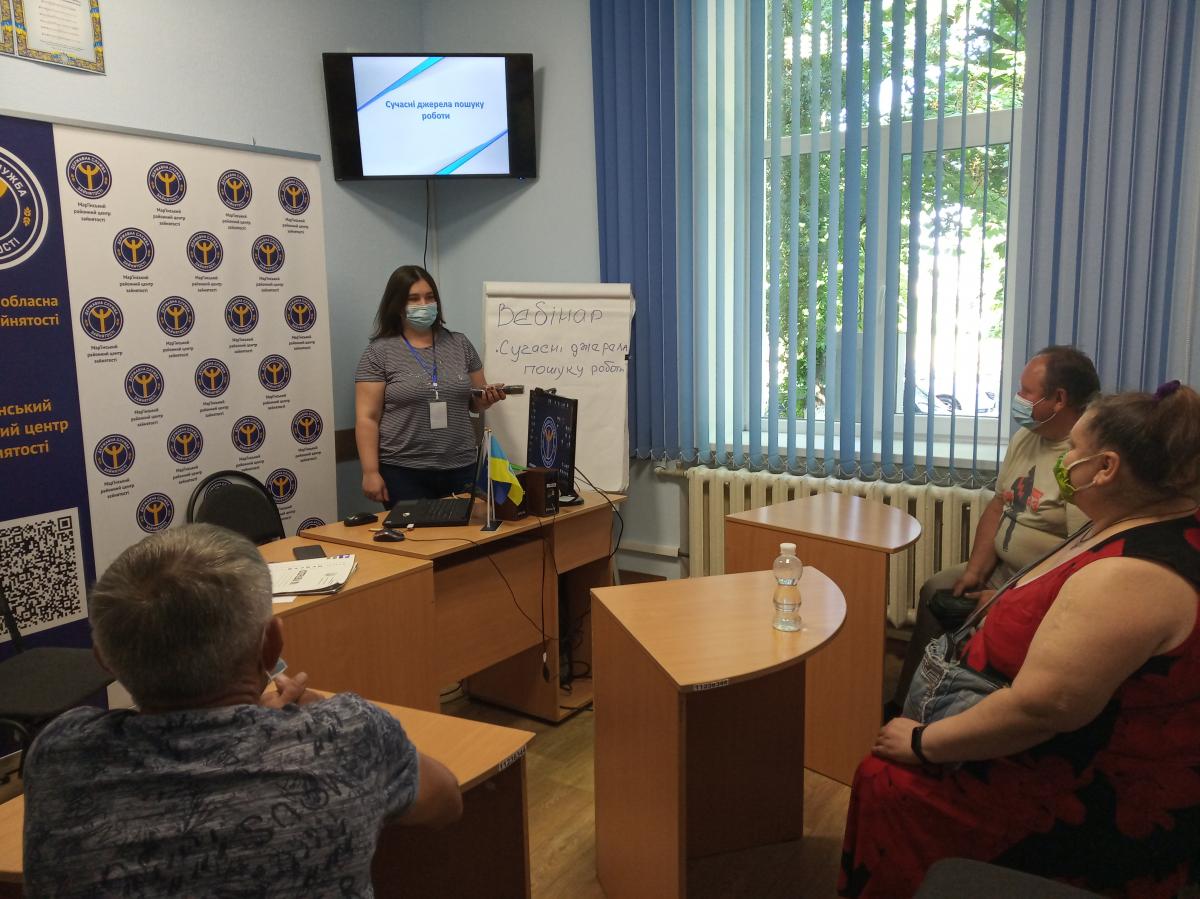 Учасники ознайомились з сучасними технологіями пошуку роботи, обговорили джерела вакансій, які використовують, проаналізували їх переваги і недоліки. Провідна фахівчиня з профорієнтації відділу активної підтримки безробітних Юлія Могукало попередила безробітних про можливі способи шахрайства при працевлаштуванні і порадила обережно ставитися до посередницьких послуг під час пошуку роботи. Учасники отримали інформаційні матеріали для подальшого використання.