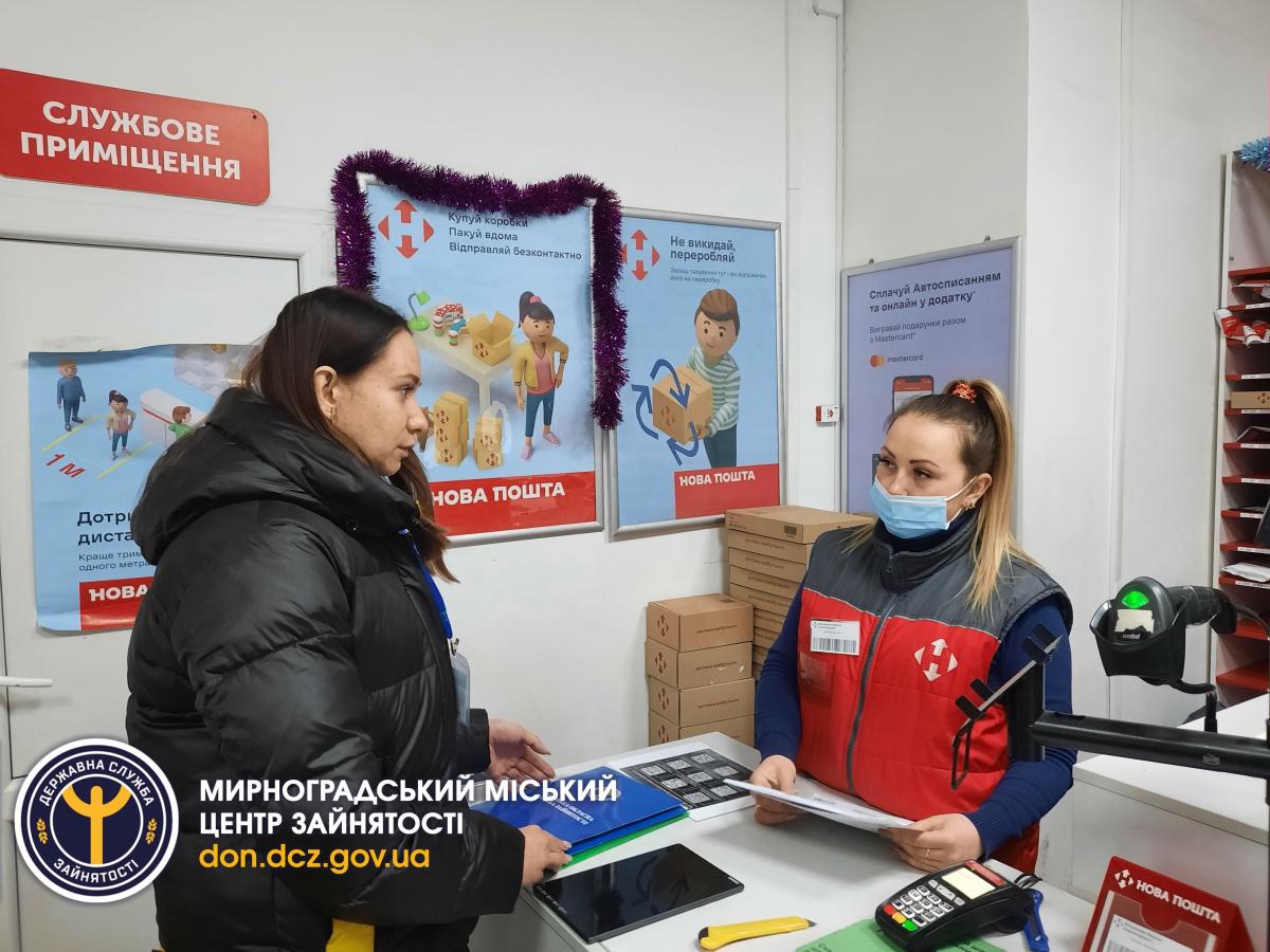 11 січня фахівці Мирноградського міського центру зайнятості провели робочі зустрічі у відділеннях ТОВ «Нова пошта».