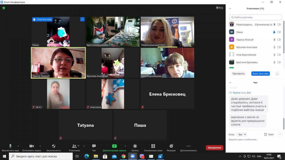 18 січня у Мирноградському міському центрі зайнятості відбувся профорієнтаційний онлайн захід "Майстерня кондитерів". Участь у незвичайному майстер-класі взяли учні різних шкіл міста. У якості спікерів під час заходу виступили представники ДНЗ "Мирноградський міський гірничий ліцей" та підприємиця Олена Брюховець.