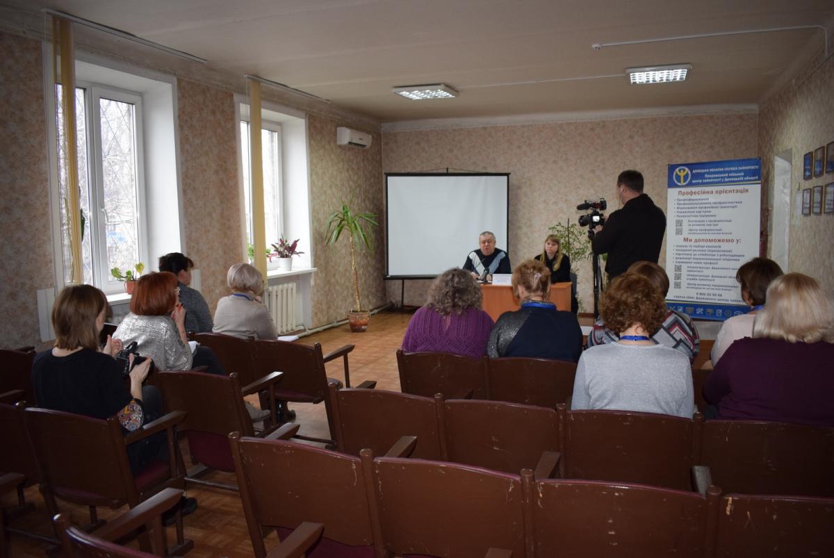 Під час заходу присутніх також було проінформовано про можливість безкоштовно здобути робочу професію у Донецькому центрі професійно-технічної освіти Державного центру зайнятості, який проводить навчання на 14 ліцензованих професій. Найактуальнішими на сьогоднішній день є такі професії, як: кухар, овочівник озеленювач, перукар, швачка, продавець.