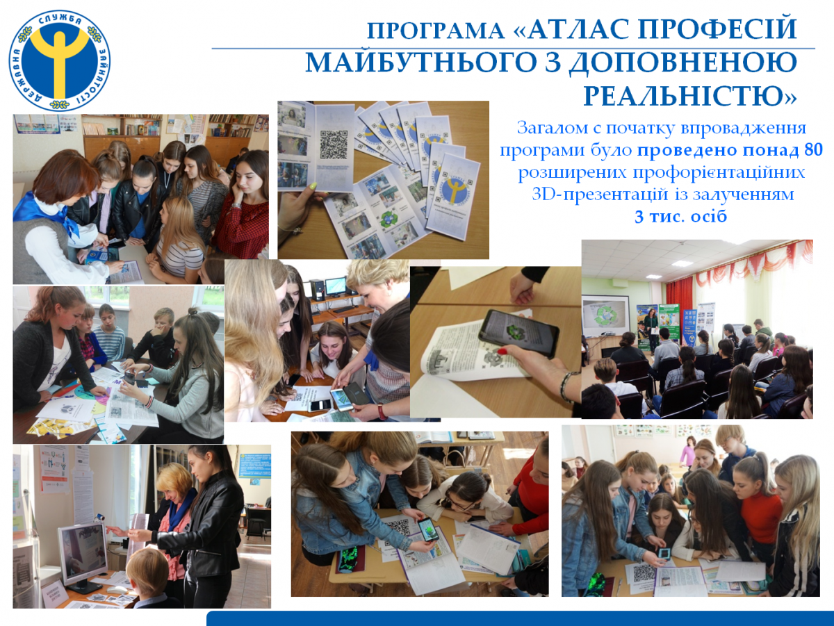 У перший день занять Донецьким обласним центром зайнятості було презентовано інноваційну розробку – інтерактивний 3D Атлас професій майбутнього з використанням доповненої віртуальної реальності. Також були представлені безкоштовні мобільні додатки «Центр профорієнтації», «Центр розвитку підприємництва», «Довідник послуг та пільг учасника АТО», «Державний навчальний заклад «Донецький центр ПТО ДСЗ».