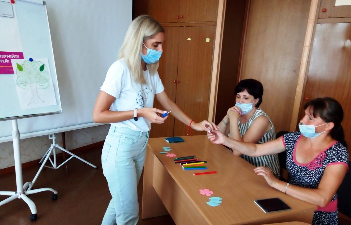 Під час тренінгового заняття «Щаслива дитина- благополучна родина» пані Євгенія ознайомила присутніх з особливостями впливу стилю спілкування в сім’ї на емоційне благополуччя дітей. Виконання психологічних вправ сформувало у батьків вміння аналізувати свої виховні впливи на дитину та їх наслідки. Обговорення під час «мозкового штурму» сприяло формуванню навичок конструктивного спілкування, уміння взаємодіяти, зміцнювати та зберігати позитивні родинні відносини.