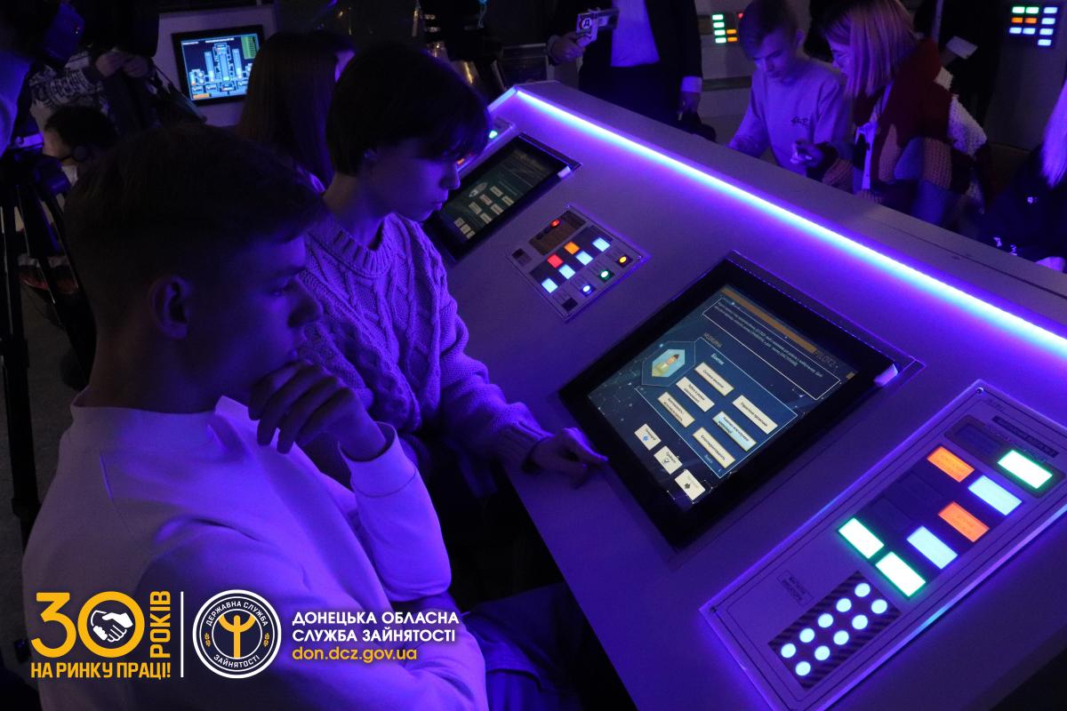 На локації «Космодром» проходила інтелектуально-творча форсайт-гра «Майбутнє у центрі уваги», в якій змагались дві команди учнів ЗЗСО. Метою гри було ознайомлення випускників з професіями майбутнього та основними трендами, що визначають напрям розвитку сучасного і майбутнього ринку праці, в нестандартному форматі.