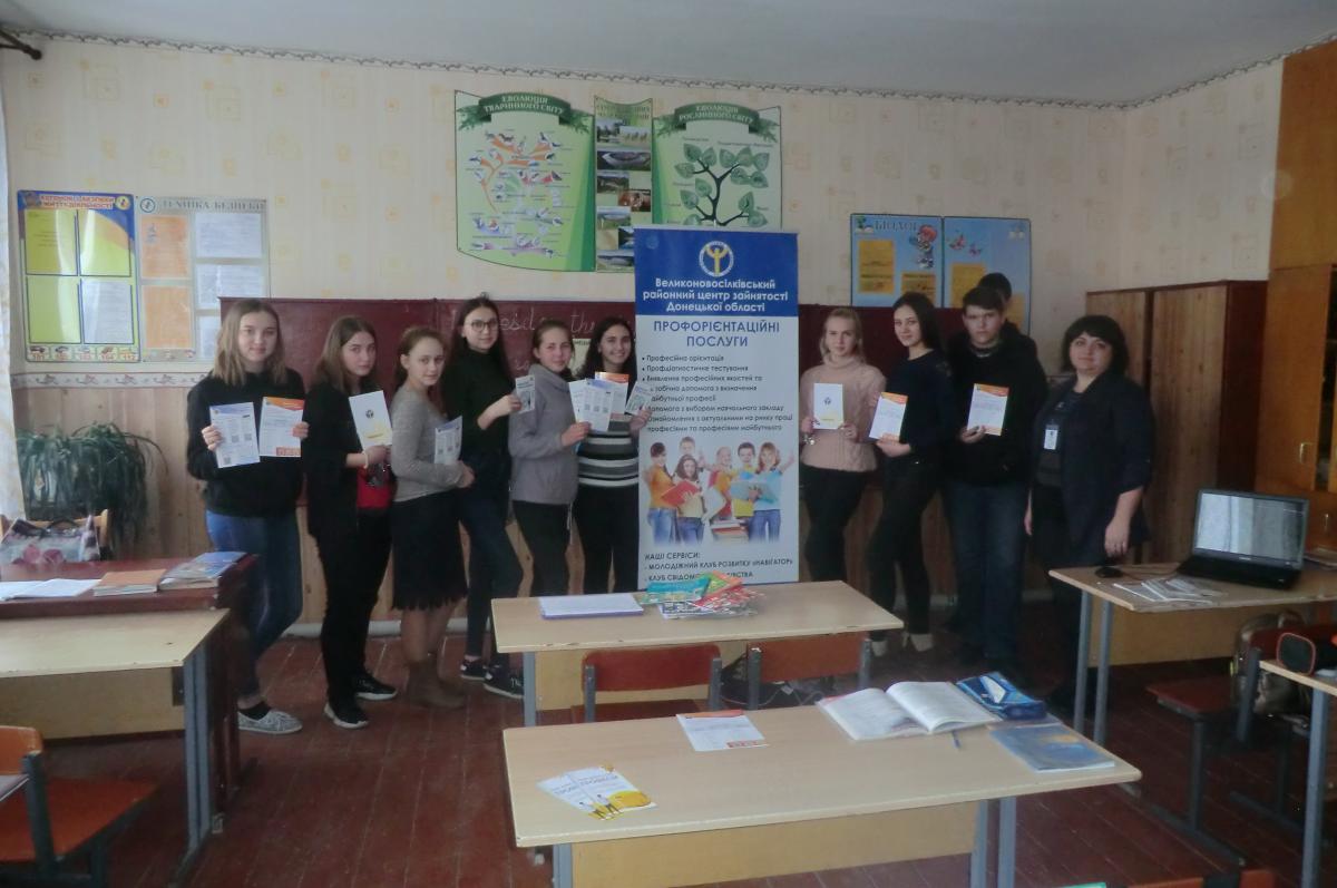 5 лютого фахівці Великоновосілківського районного центру зайнятості провели виїзний захід у Старомлинівську ЗОШ І-ІІІ ступенів. Мета заходу - надання допомоги у професійному самовизначенні, формування свідомого підходу до вибору професії, мотивації до легального працевлаштування, інформування про послуги служби зайнятості.