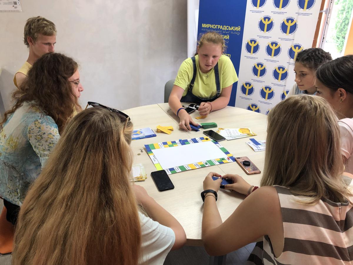 29 червня у Мирноградському міському центрі зайнятості відбулось засідання молодіжного клубу «Територія розвитку». Цього разу учасники клубу моделювали професійний вибір в контексті життєвого і особистісного самовизначення. Захід пройшов на платформі Молодіжного центру «Рух» в ігровій формі.