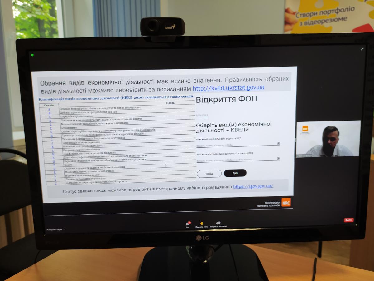 На вебінарі розглянуті питання щодо здійснення підприємницької діяльності та обрання КВЕД, отримання ліцензії на здійснення окремих видів господарської діяльності. Віктор зосередив увагу на основах ведення бізнесу фізичними особами-підприємцями.