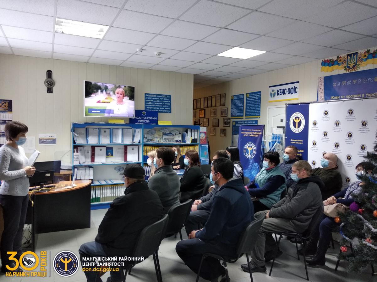 У ході спілкування було погоджено шляхи ефективної співпраці між Мангушським РЦЗ та Службою у справах дітей Мангушської селищної ради. Фахівці центру зайнятості та безробітні отримали вичерпну інформацію від запрошених гостей стосовно принципів та умов запровадження та організації патронату. Окрім цього, учасникам заходу було продемонстровано відеоролик, в якому представники таких сімей ділилися власним досвідом патронатного виховання.