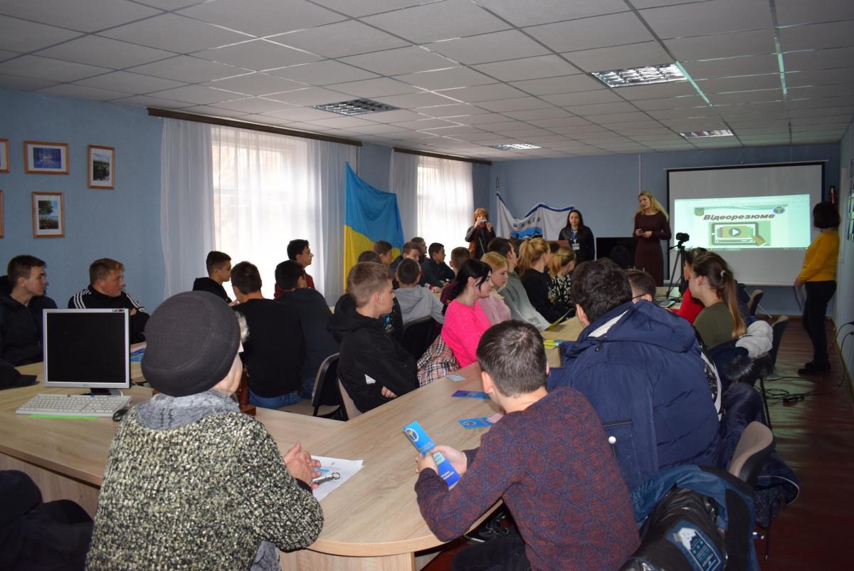 Фахівці Покровського МЦЗ було надали інформацію про переваги відео-резюме, як зробити його якісним, креативним та цікавим. Студентів ознайомили про стан ринку праці та послуги, які надаються службою зайнятості.   Донецька обласна служба зайнятості має свої онлайн - ресурси (Веб - портал Донецького обласного центру зайнятості , офіційну сторінку мережі в Facebook, додатково створений канал відеохостингу Youtube), які надають можливість сучасного інформаційного просування самопрезентацій у формі відеорезюме клієнтів служби зайнятості.