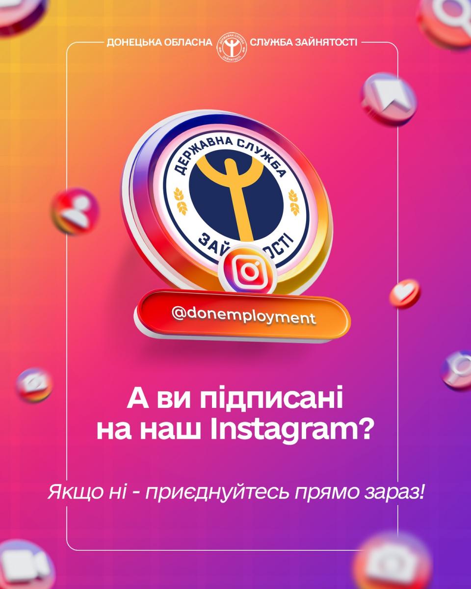 У Донецької обласної служби зайнятості є своя офіційна сторінка https://www.instagram.com/donemployment. Підписуйтесь — буде інформативно та корисно. Ловіть найсвіжіші можливості для вас та бізнесу.