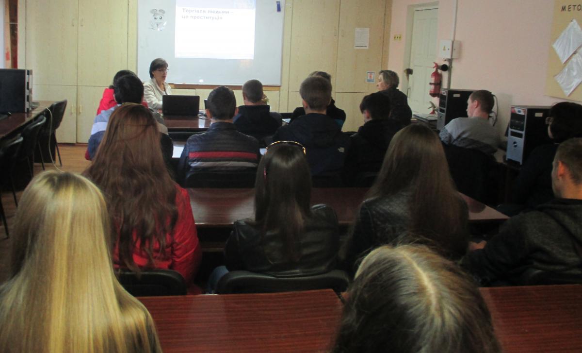 Напередодні Європейського дня боротьби з торгівлею людьми фахівці Мар’їнського районного центру зайнятості 16-17 жовтня провели виїзні акції «ПротиДій торгівлі людьми!» зі студентами Курахівського професійного ліцею та Курахівської філії «Дніпровський державний технікум енергетичних та інформаційних технологій». Мета заходу - підвищення рівня інформованості молоді щодо ризиків нелегального працевлаштування, небезпеки нелегальної трудової міграції.