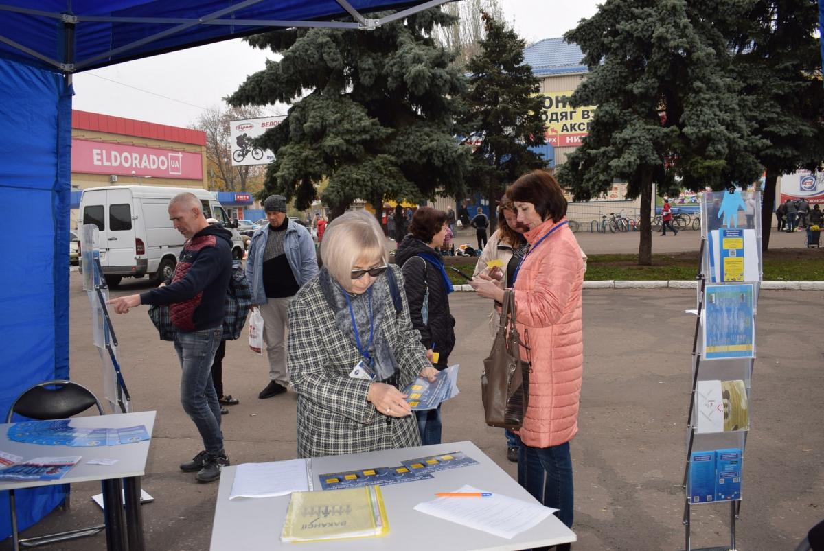 Користуючись останніми теплими днями, що дарує нинішня осінь, фахівці відділів рекрутингу та активної підтримки Покровського міського центру зайнятості жваво спілкувалися з мешканцями міста, надаючи інформацію про послуги служби зайнятості, розповсюджуючи листівки та буклети, навчаючи користуватися електронними сервісами за допомогою гаджетів. Яскравий намет служби зайнятості привертає увагу перехожих, і багато з тих, хто завітав до рекрутерів, вже отримав реальну допомогу, дізнавшись про «гарячі вакансії». Ще кращі перспективи на допомогу рекрутерів надає можливість просто у наметі скласти експрес резюме - в цьому разі шукачу роботи телефонуватимуть у разі появлення цікавих для нього пропозицій роботи.