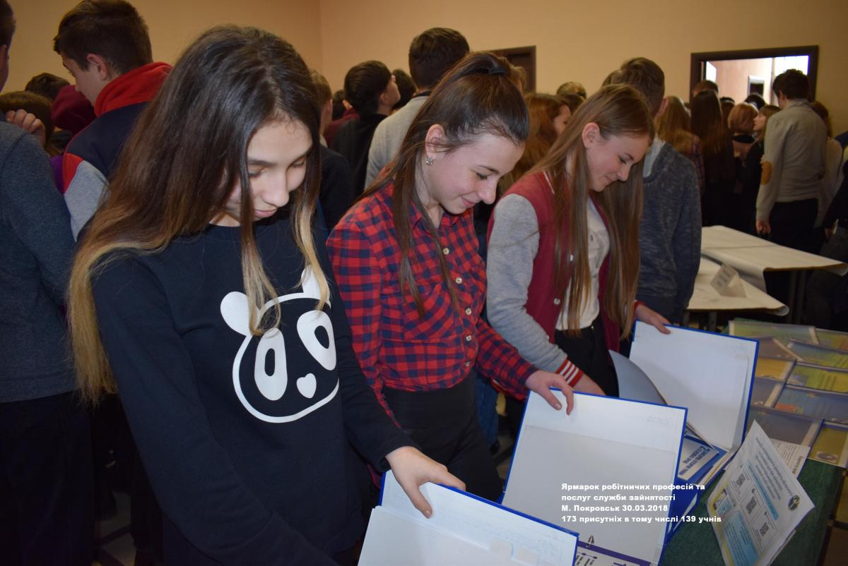 30 березня у приміщенні позашкільного навчального закладу Центр творчості та дозвілля ВО Покровської міськради фахівці Покровського міського центру зайнятості на чолі з директором Миколою Толмачовим провели Ярмарок робітничих професій та послуг служби зайнятості для учнів випускних класів міста Покровськ та Покровського району.